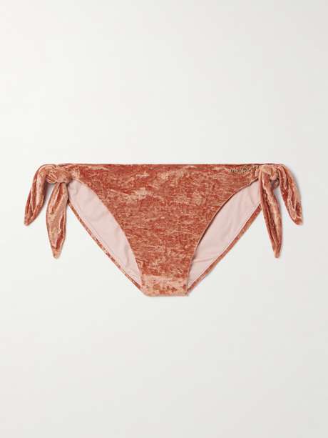 Chloé's bikini briefs are made from plush stretch-velvet and accented with a gold-tone logo plaque. The ties are adjustable, so you can perfect the fit.