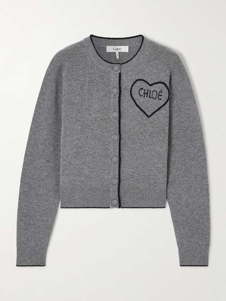 Chloé's cardigan is playfully embroidered with a heart featuring the moniker on the chest. It's made from soft and insulating wool and cashmere-blend and has contrasting trims and covered buttons. Ribbed edges define the slightly loose shape.
