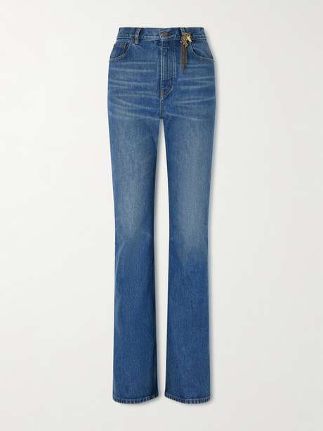 CHLOÉ Embellished high-rise straight-leg organic jeans