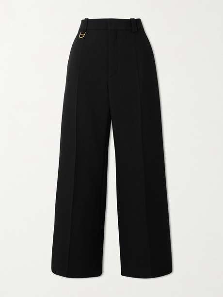 Chloé's pants are tailored from wool-crepe in a versatile straight-leg shape with pressed creases. They sit high on the waist and feature the signature gold D-ring detail at the belt loop — a subtle nod to the house's equestrian influences.