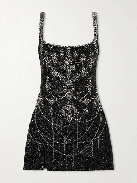 Every shimmering bead and crystal on Clio Peppiatt's dress has been sewn by hand. It's made from mesh for a glove-like fit through the bodice, while the mini skirt gracefully flares. Style it with equally starry jewels.