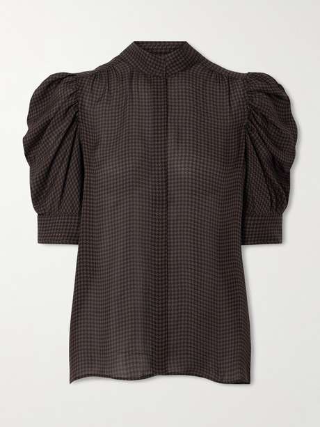 FRAME's 'Gillian' blouse is made from silk-satin featuring a chic and classic houndstooth print. It's designed with gently puffed sleeves that add subtle volume to the slim fit and has a stand collar. Wear yours with the label's signature jeans.
