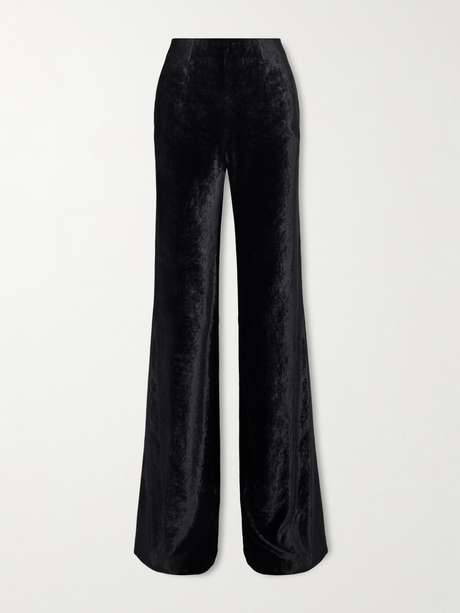 Galvan’s 'Winter Sun' pants offer a sophisticated alternative to classic evening dresses. Cut from plush, fluid velvet, they sit high on the waist and fall to sweeping wide legs that move elegantly with every step.