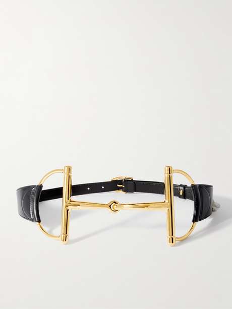 Gucci's Fall '25 collection is an homage to the iconic horsebit, as this year marks its 70th anniversary. Debuted on the runway, this belt is made from slim leather and centered with a slim, elongated version of the hardware in gold-tone metal.
