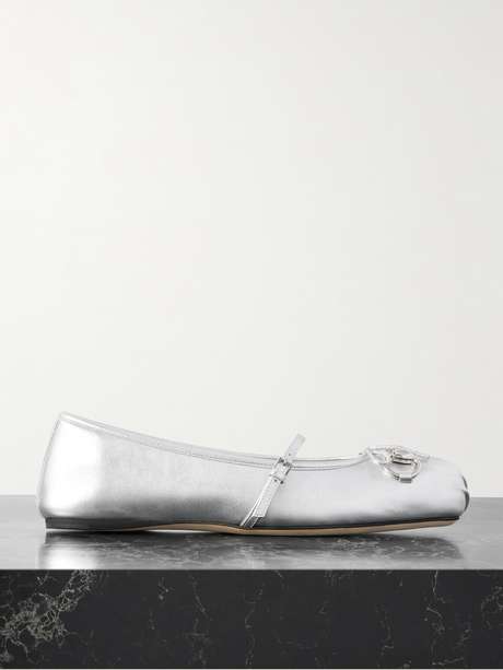 Gucci's ballet flats are the kind you can center the rest of your outfit around. They're made from metallic leather and finished with the house's signature horsebit hardware in silver-tone metal.
