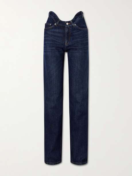 Debuting as Jean Paul Gaultier’s creative director, Duran Lantink infused the Spring ’26 collection with a bold, futuristic spirit. Crafted from sturdy denim, these jeans are cut in a straight-leg silhouette and designed with a sculptural curved waistband that nods to the house’s experimental approach to tailoring.