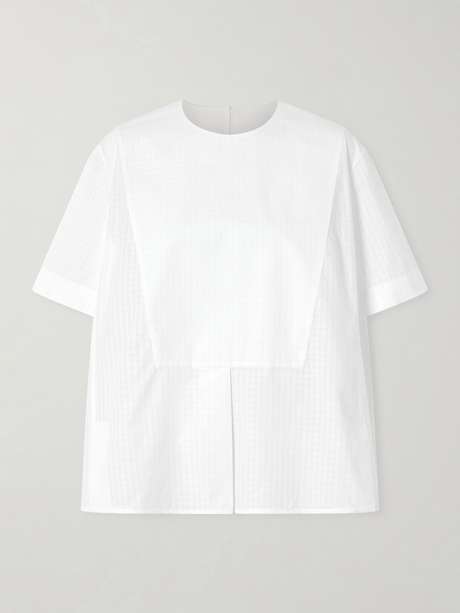 Jil Sander's tee is detailed with a bib panel at the front that riffs off traditional men's tuxedo shirts. It's made from cotton woven with subtle checks and has a boxy, relaxed shape. Wear it with tailored pants or a midi skirt.