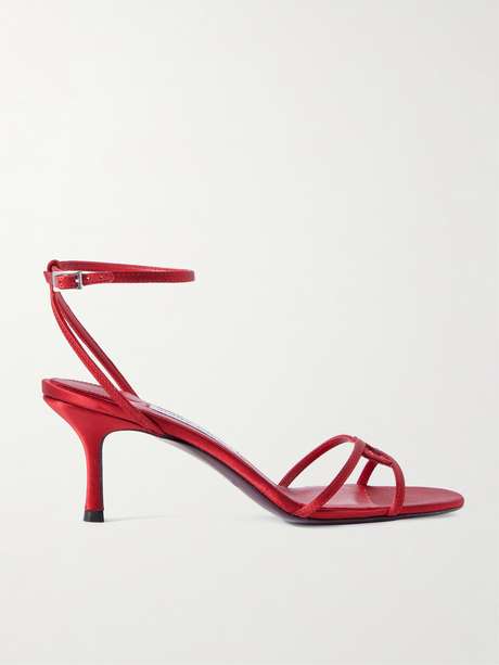 Jimmy Choo's shoes are a favorite with A-listers like Zendaya and Bella Hadid for the red carpet. These 'Leo' sandals have been made in Italy from smooth satin with barely-there crossover straps and 65mm stiletto heels.