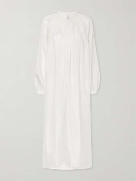 Les Vacances d'Irina's 'Robe la Perle' maxi dress has an ethereal nightwear feel. Made from silk-organza, it features a loose silhouette with raglan balloon sleeves and a scoop neckline, flowing into soft pleats to an ankle-length finish.
