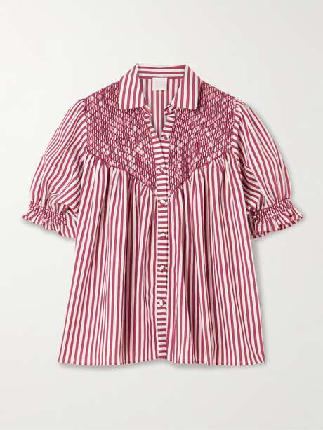 LORETTA CAPONI Milvia smocked striped satin blouse