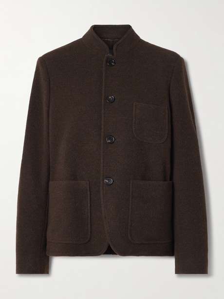 Loro Piana's jacket has a mandarin collar that gives it a chic, retro feel. It's made from the label's signature Pecora Nera® wool in its natural dark-brown shade and decorated with a trio of pockets. Wear yours as a set with the coordinating pants.