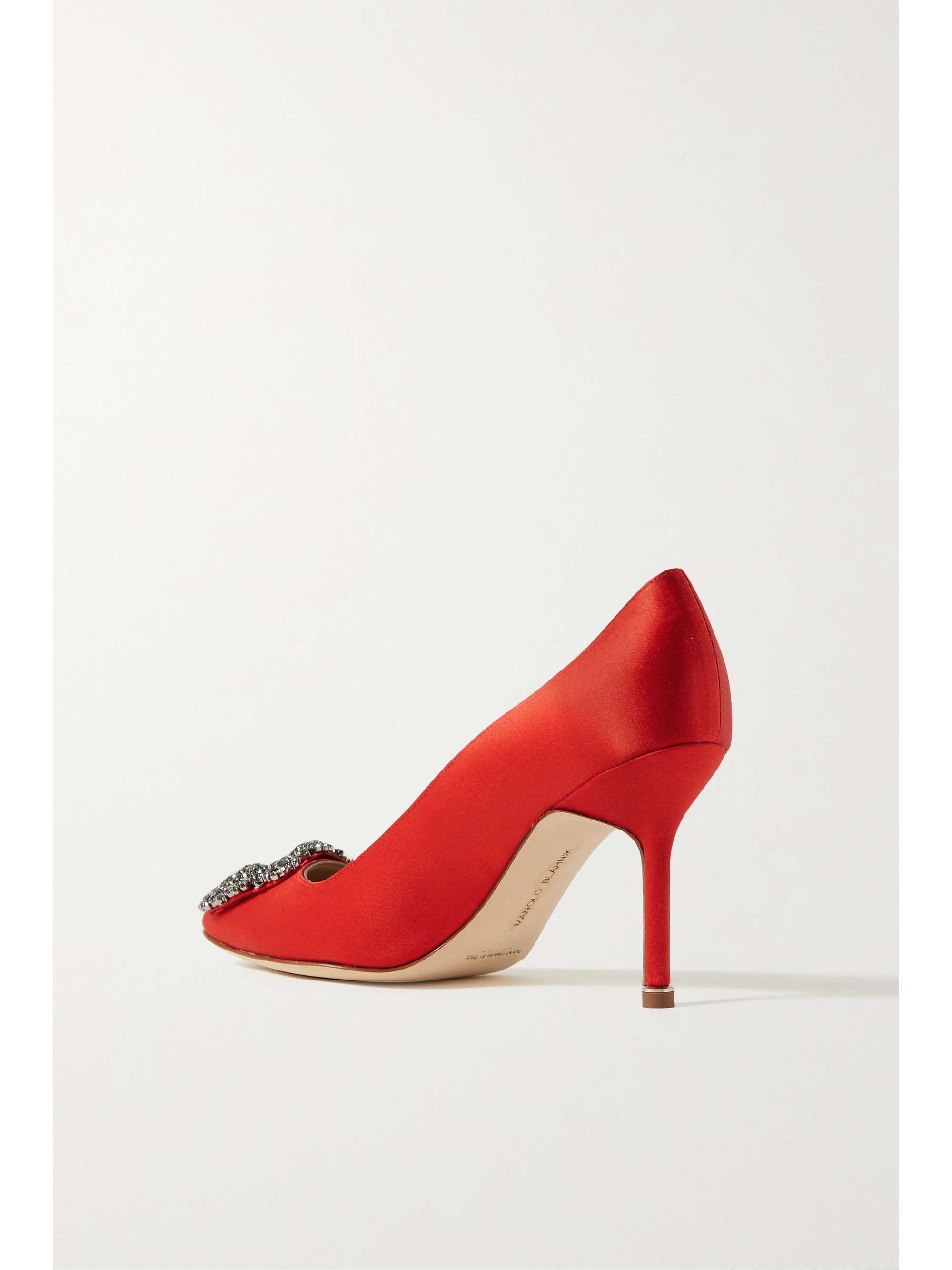 MANOLO BLAHNIK Hangisi 90 crystal-embellished satin pumps
