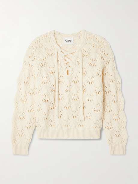 MARANT ÉTOILE Wendy lace-up open-knit wool-blend sweater
