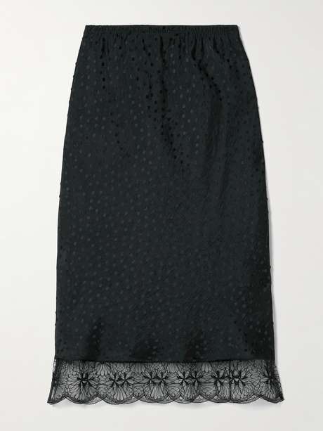 Maria McManus' midi skirt is trimmed with delicate lace inspired by Dentelle de Calais-Caudry® - a precisely-crafted, 200-year old French version. Made from satin-jacquard, it's woven and flocked with polka-dots and has a comfortable elastic waistband.