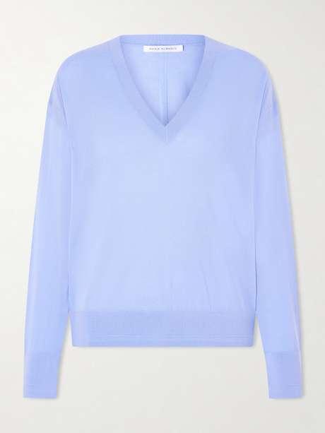Maria McManus' collections are made from the finest fibers. This sweater is knitted from merino wool, prized for its softness, lightness and breathability. It has a relaxed fit with a deep V-neck and is ribbed along the edges for shape.