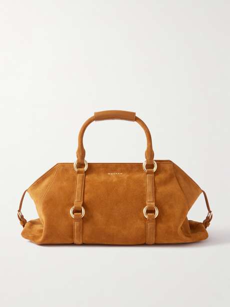Debuting on the Fall ’25 runway, McQueen’s ‘Farringdon’ bag takes its name from the historic London district where the label’s design studio is located. It's been crafted in Italy from plush suede and detailed with gold-tone hardware and side straps that adjust to expand the shape. The interior offers ample space for essentials, from your phone and wallet to your current read.