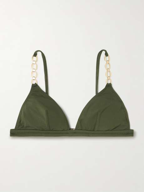 You don't have to vacation on the shores of Los Cabos to enjoy wearing Melissa Odabash's 'Mexico' bikini top, but we think it'd make a fitting backdrop. It's defined by triangle cups that keep tan lines to a minimum and is embellished with gold-tone chains along the slender shoulder straps. Find the matching briefs in our edit.