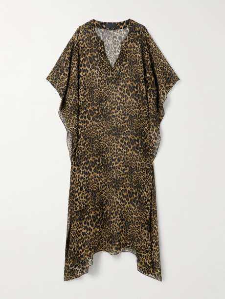 Cut to loosely drape over your body, Nili Lotan's 'Erica' kaftan is made from semi-sheer silk crepe de chine printed with leopard spots. It has a V-neckline that will complement a statement necklace or a few layered chains.