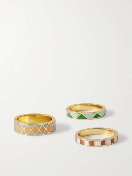 ROXANNE ASSOULIN Circus set of three gold-tone and enamel rings