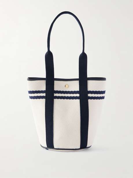 RUE DE VERNEUIL Leather and webbing-trimmed canvas tote bag