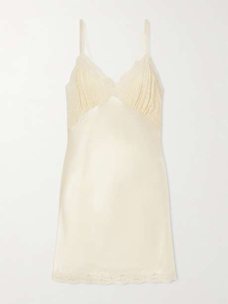 SAINT LAURENT Lace-trimmed satin-satin mini dress