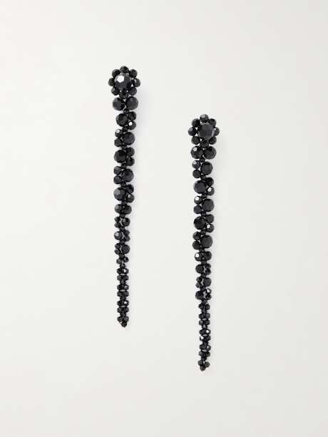 The phrase "dripping in crystals" is no exaggeration when it comes to Simone Rocha's accessories. These gold-tone earrings are dotted with black gems and have flower-shaped studs. Their dramatic drop will frame your face beautifully.