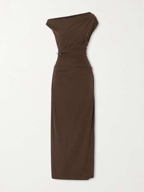 SIR.'s 'Sol' dress is adorned with a sculptural embellishment, which can be removed for a more streamlined look. Cut from crisp shell, it's gathered through the bodice and has a one-shoulder neckline. Match your jewelry to the silver-tone detail.