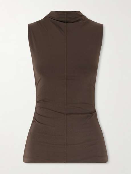 SIR. re-imagines classic staples through a modern, minimalist lens. Cut from jersey, this 'Matheo' tank is cut for a slim fit and has a draped mock neckline and raised seams through the center. We have the matching skirt in our edit, too.