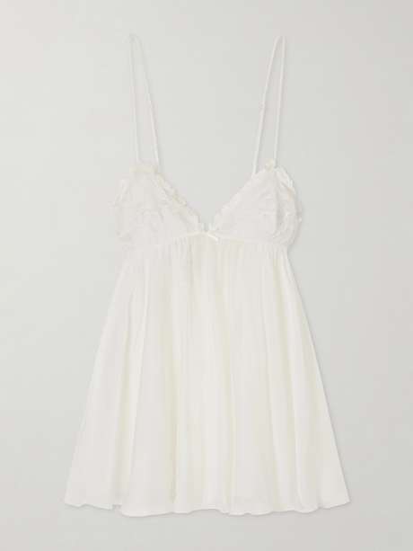 Part of the Romance Bridal collection, this lace camisole by SKIMS reflects the label’s delicate approach to modern lingerie. Crafted from fluid silk, it drapes softly against the skin, while slender adjustable straps and lace trim frame the neckline. A subtle keyhole detail completes the design.