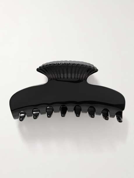 Sophie Buhai's claw clip is intricately etched to depict the look of a seashell. It's crafted from glossy acetate in classic black.