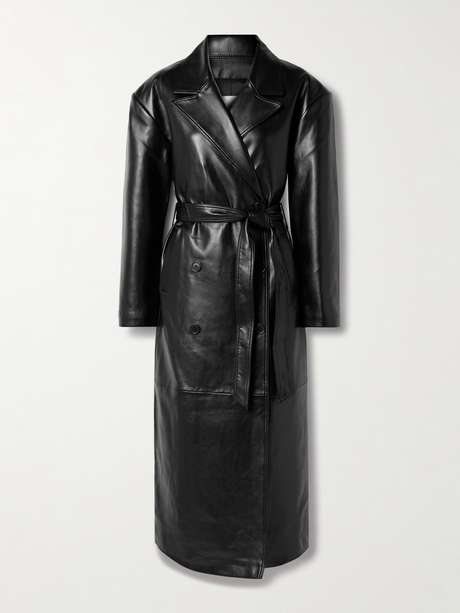 THE FRANKIE SHOP Tina belted double-breasted faux leather trench coat