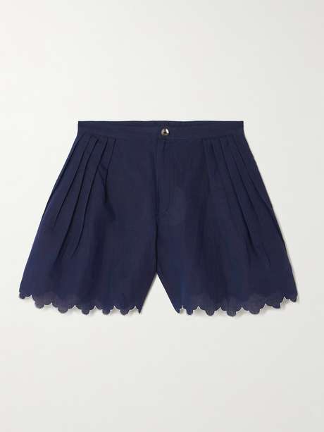 THIERRY COLSON Kenya scalloped pleated cotton and linen-blend shorts