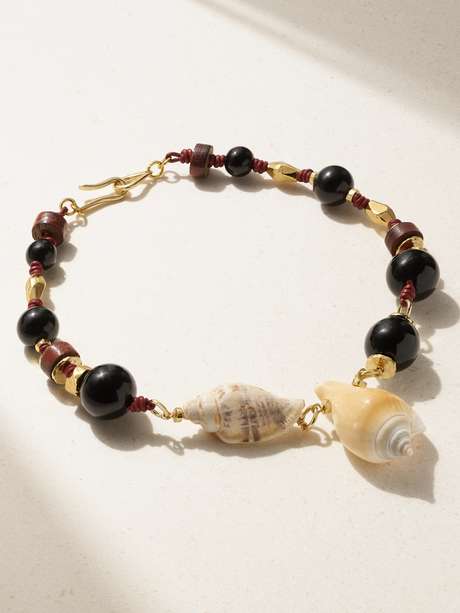 TOHUM's 'Samsara' necklace has been artfully handmade by talented local craftspeople in the label's Istanbul workshop. Made from gold-plated brass, it's strung with recycled glass, alluring onyx beads and embedded with leather cord. The shell pendant takes center stage – the perfect free-spirited look.