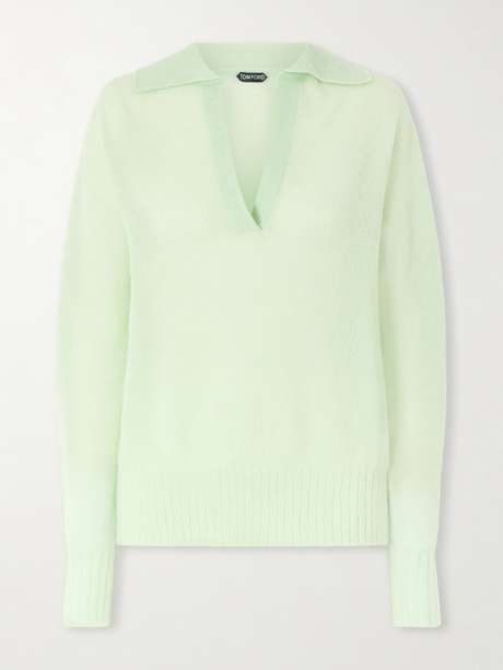 TOM FORD's sweater is finely spun from sumptuous cashmere-blend for a lightweight, ultra-soft handle. It has a relaxed open polo collar and ribbed trims.