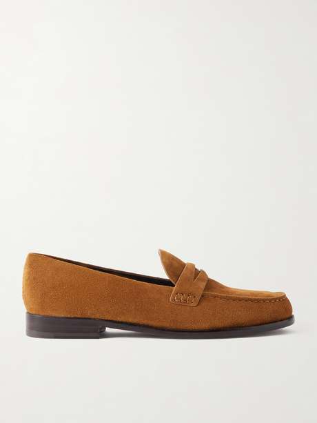 Tory Burch's loafers are embellished with a logo-engraved coin at the traditional penny slots. They're made from supple suede with cushioned footbeds and rest on buffed leather soles.