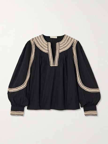 ULLA JOHNSON Laurenza ricrac and grosgrain-trimmed cotton-poplin blouse