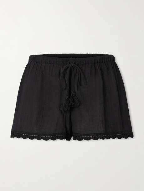 ULLA JOHNSON Aran tasseled crochet-trimmed cotton shorts