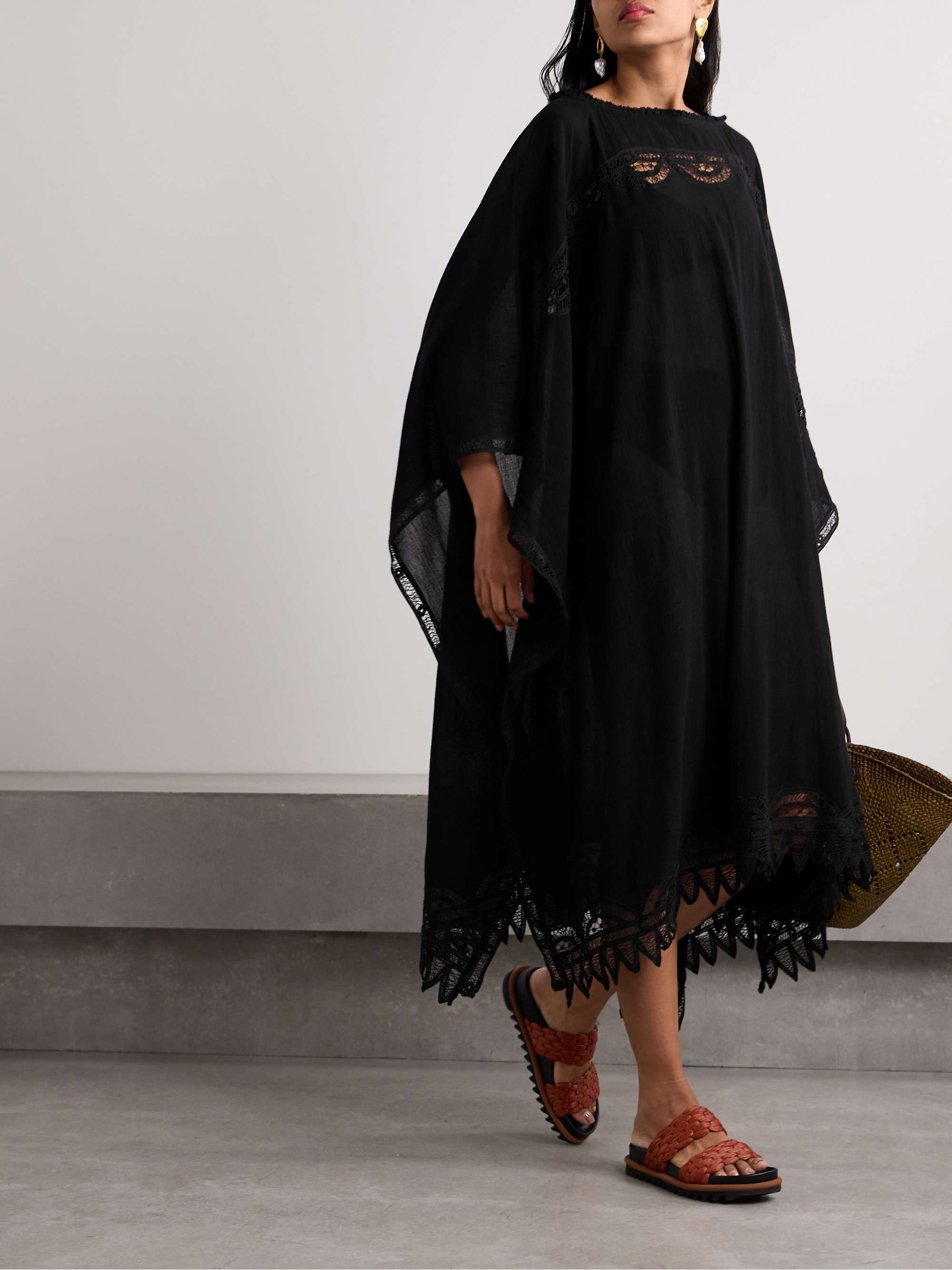 Ulla Johnson's 'Jourdana' coverup is such an elegant option for trips to the beach. Cut from airy cotton-gauze, it has a loose shape and is traced with delicate Battenberg lace.