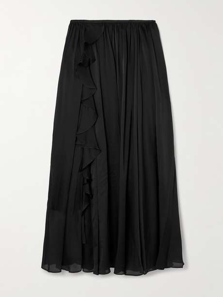 ULLA JOHNSON Zena asymmetric ruffled pleated silk-chiffon midi skirt