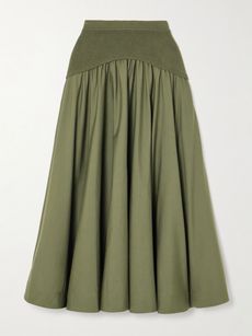 SIMKHAIOvie pleated ribbed-knit trimmed cotton-poplin midi skirt€420.00View Product DetailsSelect a Sizex smallsmallmedium - out of stocklarge - low stockx large - out of stock