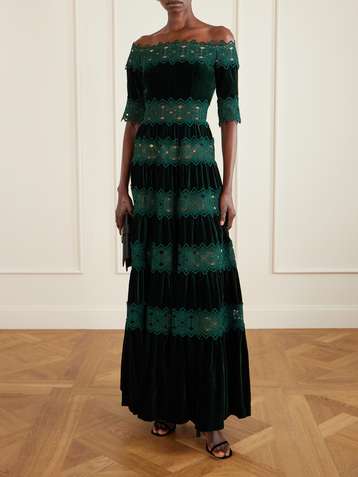 Athens-based Christos Costarellos studied costume design at the London College of Fashion before founding his eponymous brand in 1998. He uses couture techniques to create ethereal dresses and gowns inspired by ancient Greek mythology. Our exclusive capsule includes vibrant eveningwear with beautiful details like lace appliqués, Swiss-dot trims and intricate embroidery.