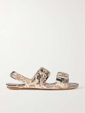 The Double Buckle snake-effect leather sandals