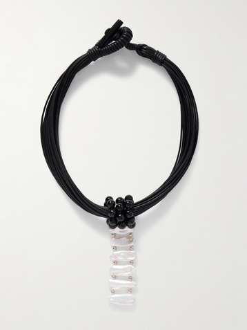 The Ivory Eclipse waxed-cotton, onyx and mother-of-pearl necklace