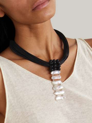 Sculptural pearl, onyx and 18-karat gold cord necklace