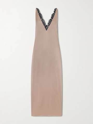 Iconic lace-trimmed satin midi dress