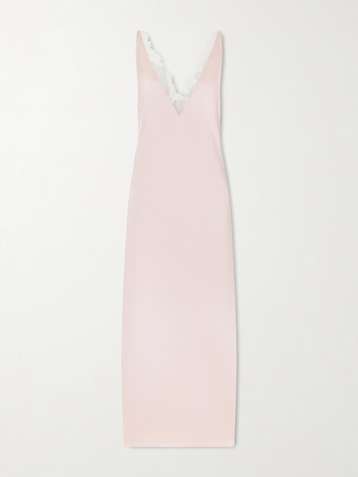 Lace-trimmed satin midi dress