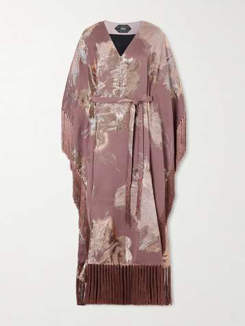 + NET SUSTAIN Bossa Nova wrap-effect fringed crepe midi skirt