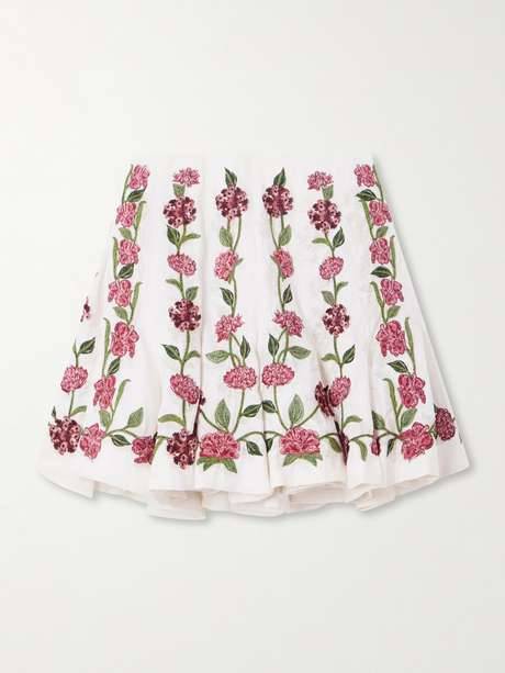 AGUA BY AGUA BENDITA Cerezo appliquéd embroidered linen mini skirt