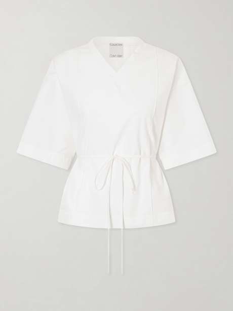 CALVIN KLEIN COLLECTION Lynn cotton-poplin wrap blouse
