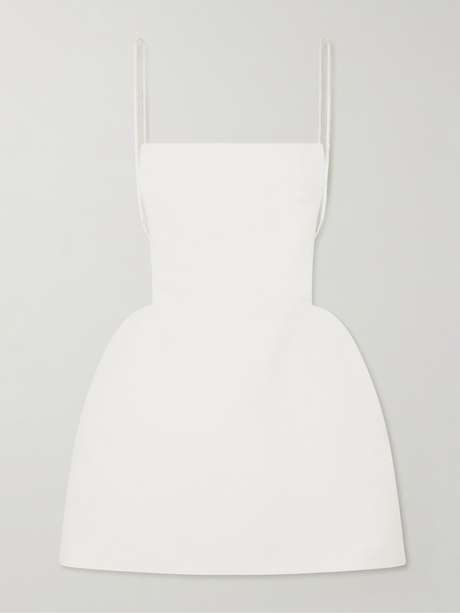 Calvin Klein Collection’s 'Henrietta' mini dress is woven for a clean, structured finish. Designed from silk-blend with slim straps and a clean square neckline, it has an open back and a softly flared skirt that enhances the silhouette. Style yours with minimal heels for an understated look.